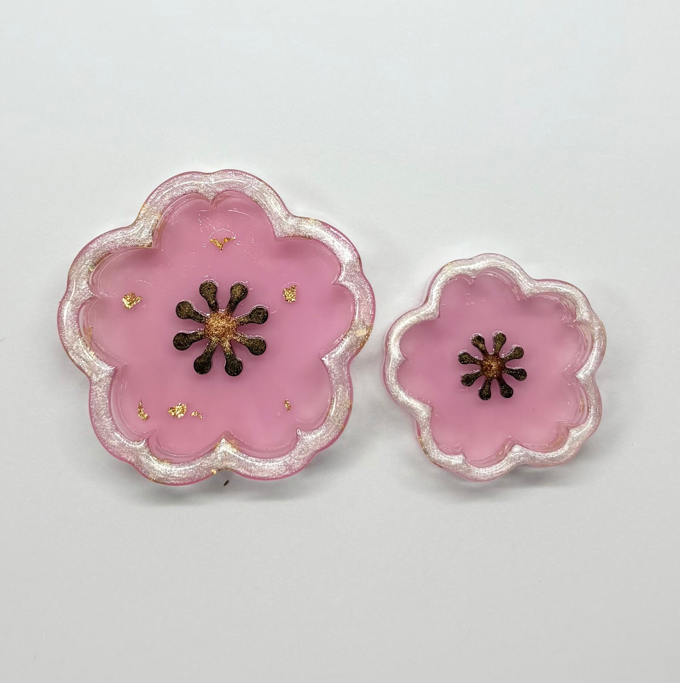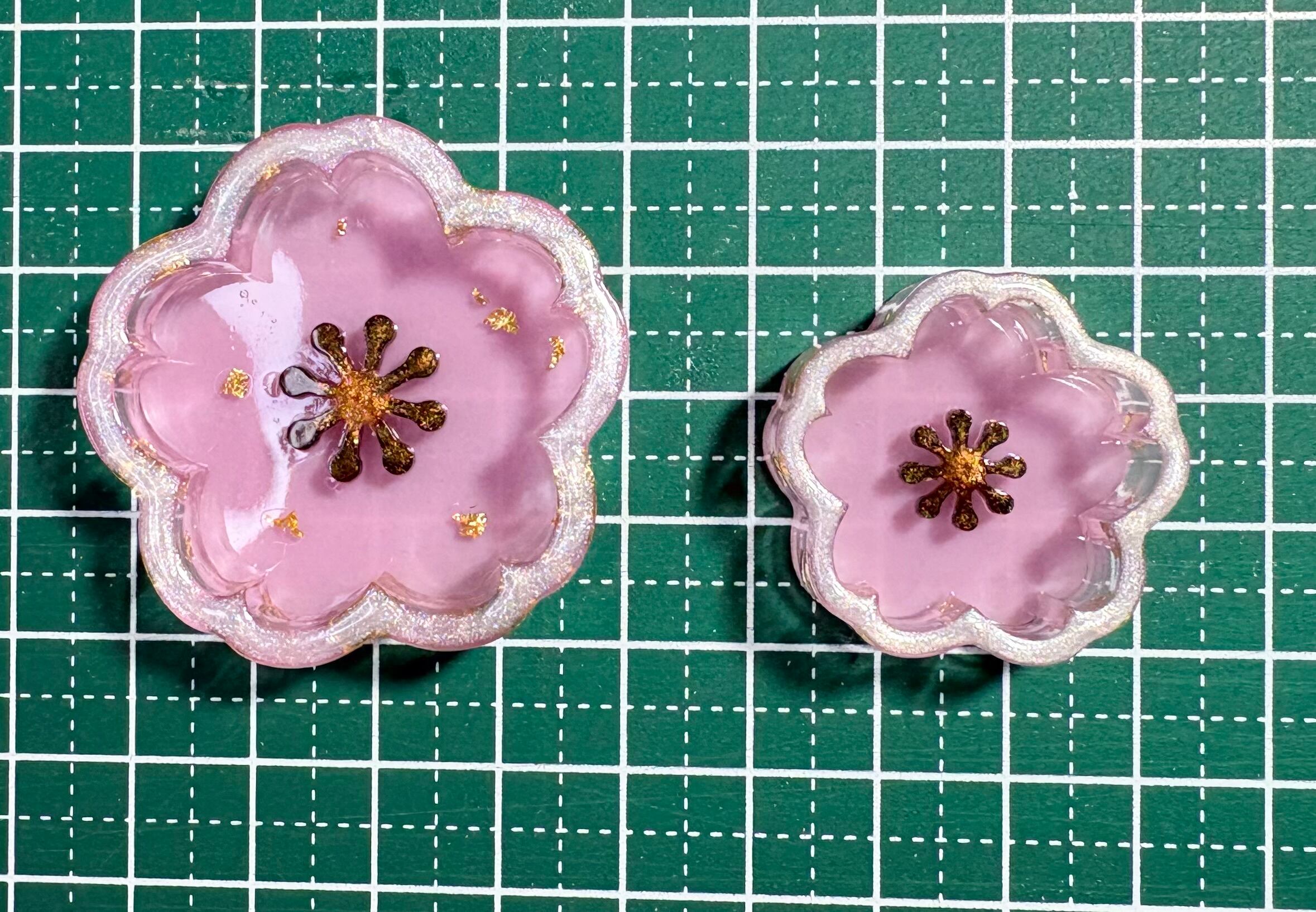 大きい方で4cm×4cm、小さい物で3cm×3cmどちらも高さは1cmです。